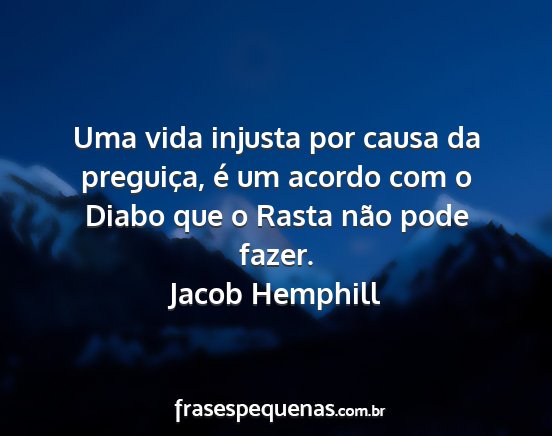 Uma vida injusta por causa da preguiça, é um acordo com o Diabo que o Rasta não pode fazer.Jacob Hemphill