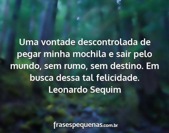 Uma vontade descontrolada de pegar minha mochila e sair pelo mundo, sem rumo, sem destino. Em busca dessa tal felicidade.Leonardo Sequim