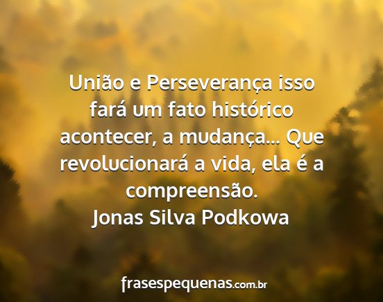União e Perseverança isso fará um fato histórico acontecer, a mudança... Que revolucionará a vida, ela é a compreensão.Jonas Silva Podkowa
