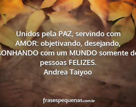 Unidos pela PAZ, servindo com AMOR: objetivando, desejando, sONHANDO com um MUNDO somente de pessoas FELIZES.Andrea Taiyoo