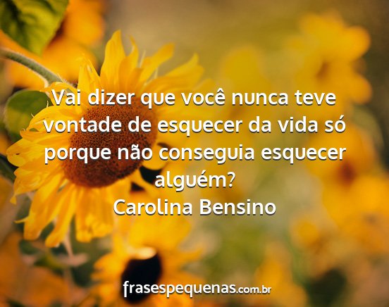 Vai dizer que você nunca teve vontade de esquecer da vida só porque não conseguia esquecer alguém?Carolina Bensino