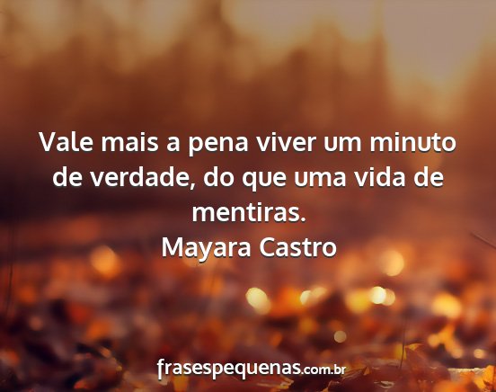 Vale mais a pena viver um minuto de verdade, do que uma vida de mentiras.