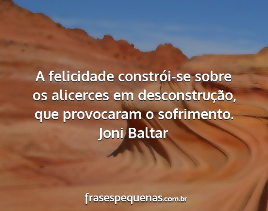 A felicidade constrói-se sobre os alicerces em desconstrução, que provocaram o sofrimento.Joni Baltar