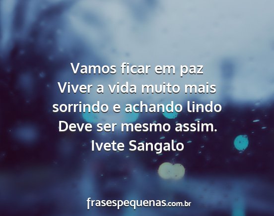 Vamos ficar em paz Viver a vida muito...
