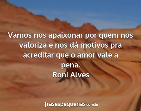 Vamos nos apaixonar por quem nos valoriza e nos dá motivos pra acreditar que o amor vale a pena.Roni Alves