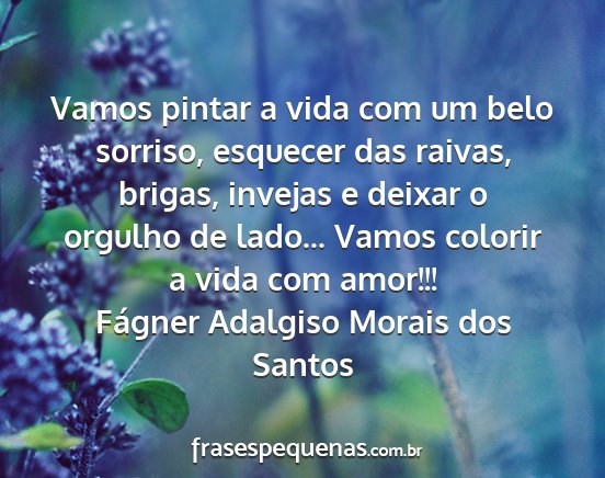 Vamos pintar a vida com um belo sorriso, esquecer das raivas, brigas, invejas e deixar o orgulho de lado... Vamos colorir a vida com amor!!!Fágner Adalgiso Morais dos Santos