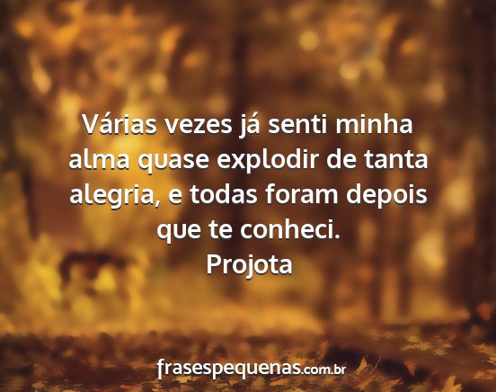 Várias vezes já senti minha alma quase explodir de tanta alegria, e todas foram depois que te conheci.Projota