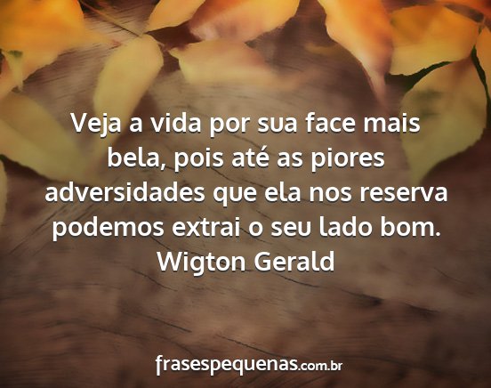 Veja a vida por sua face mais bela, pois até as piores adversidades que ela nos reserva podemos extrai o seu lado bom.Wigton Gerald