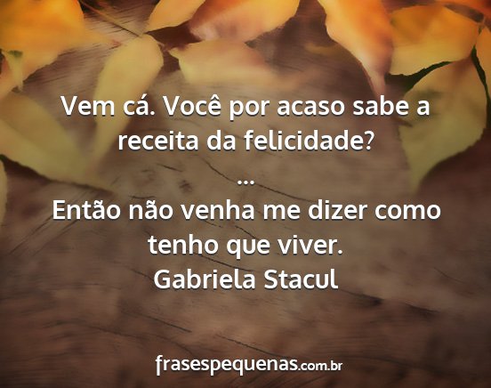 Então não venha me dizer como tenho que viver.Gabriela Stacul