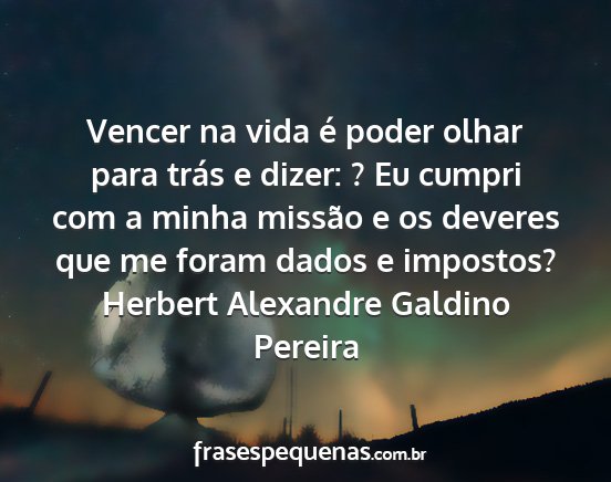 Vencer na vida é poder olhar para trás e dizer: ? Eu cumpri com a minha missão e os deveres que me foram dados e impostos?Herbert Alexandre Galdino Pereira