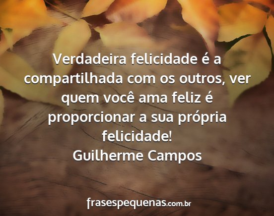 Verdadeira felicidade é a compartilhada com os outros, ver quem você ama feliz é proporcionar a sua própria felicidade!Guilherme Campos