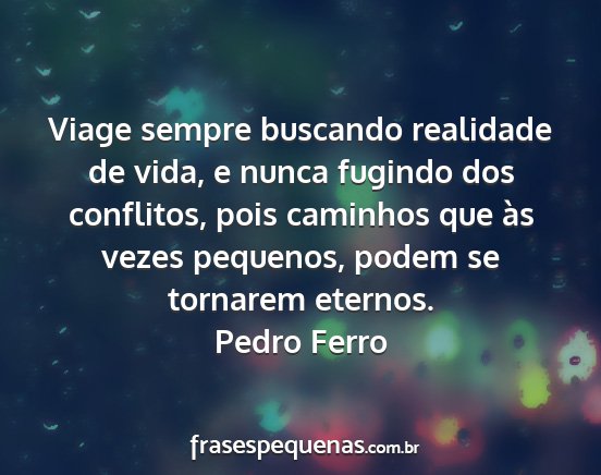 Viage sempre buscando realidade de vida, e nunca fugindo dos conflitos, pois caminhos que às vezes pequenos, podem se tornarem eternos.Pedro Ferro