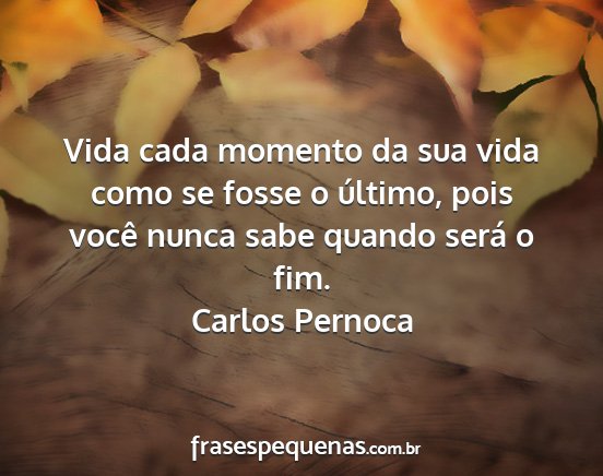 Vida cada momento da sua vida como se fosse o último, pois você nunca sabe quando será o fim.Carlos Pernoca