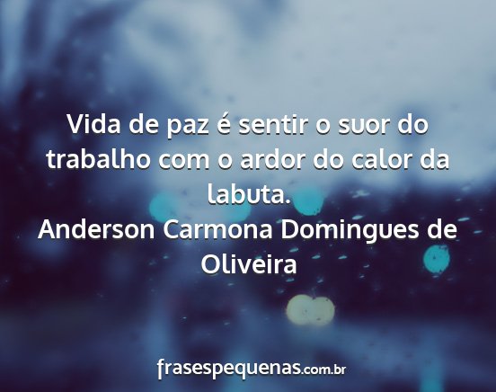 Vida de paz é sentir o suor do trabalho com o ardor do calor da labuta.Anderson Carmona Domingues de Oliveira