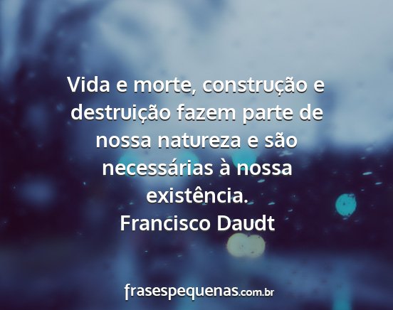 Vida e morte, construção e destruição fazem parte de nossa natureza e são necessárias à nossa existência.Francisco Daudt