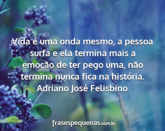 Vida é uma onda mesmo, a pessoa surfa e ela termina mais a emoção de ter pego uma, não termina nunca fica na história.Adriano José Felisbino