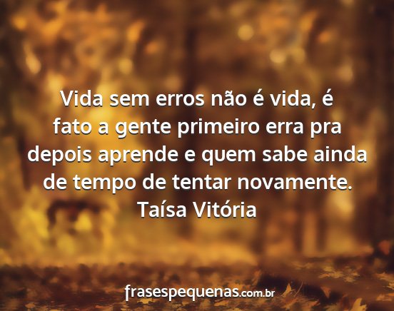 Vida sem erros não é vida, é fato a gente primeiro erra pra depois aprende e quem sabe ainda de tempo de tentar novamente.Taísa Vitória