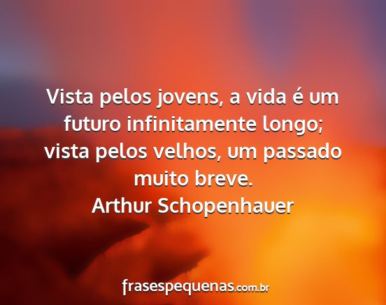 Vista pelos jovens, a vida é um futuro infinitamente longo; vista pelos velhos, um passado muito breve.Arthur Schopenhauer