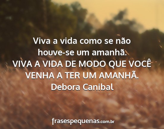 VIVA A VIDA DE MODO QUE VOCÊ VENHA A TER UM AMANHÃ.Debora Canibal