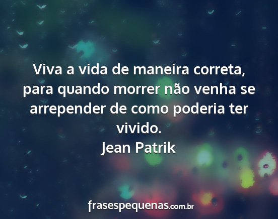 Viva a vida de maneira correta, para quando morrer não venha se arrepender de como poderia ter vivido.Jean Patrik