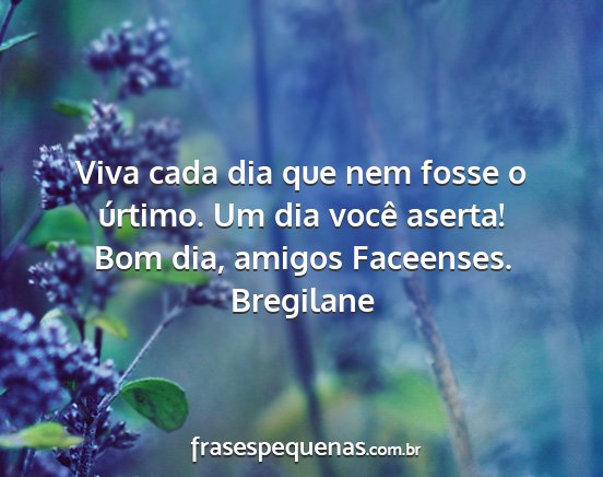 Viva cada dia que nem fosse o úrtimo. Um dia você aserta! Bom dia, amigos Faceenses.