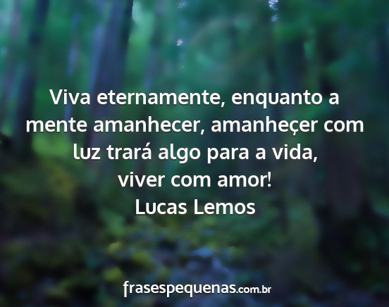 Viva eternamente, enquanto a mente amanhecer, amanheçer com luz trará algo para a vida, viver com amor!Lucas Lemos