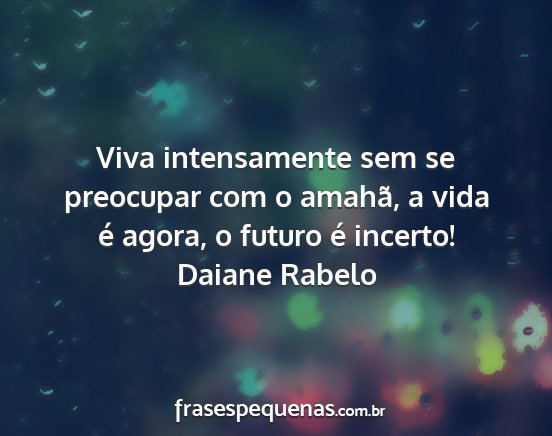 Viva intensamente sem se preocupar com o amahã, a vida é agora, o futuro é incerto!