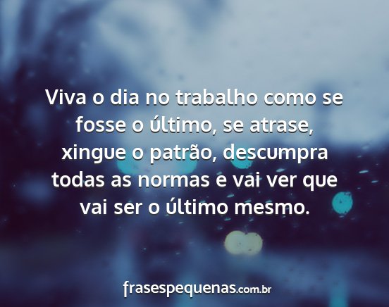 Viva o dia no trabalho como se fosse o último, se atrase, xingue o patrão, descumpra todas as normas e vai ver que vai ser o último mesmo.