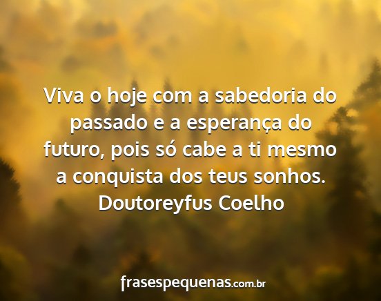 Viva o hoje com a sabedoria do passado e a esperança do futuro, pois só cabe a ti mesmo a conquista dos teus sonhos.Doutoreyfus Coelho