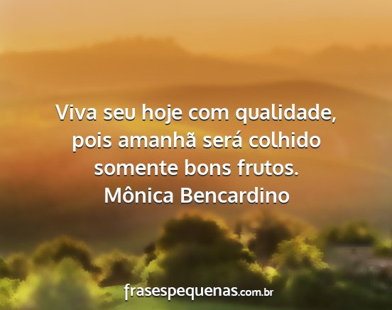 Viva seu hoje com qualidade, pois amanhã será colhido somente bons frutos.