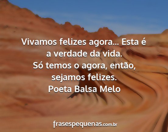 Só temos o agora, então, sejamos felizes.Poeta Balsa Melo