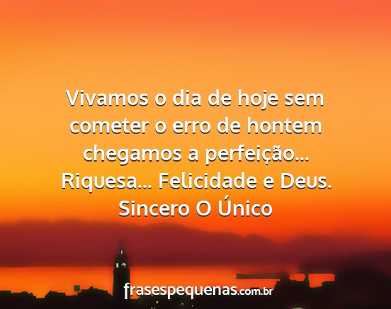 Vivamos o dia de hoje sem cometer o erro de hontem chegamos a perfeição... Riquesa... Felicidade e Deus.Sincero O Único