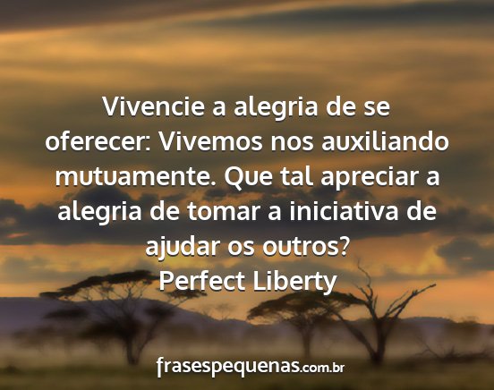 Vivencie a alegria de se oferecer: Vivemos nos auxiliando mutuamente. Que tal apreciar a alegria de tomar a iniciativa de ajudar os outros?Perfect Liberty