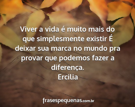 Viver a vida é muito mais do que simplesmente existir É deixar sua marca no mundo pra provar que podemos fazer a diferença.Ercilia