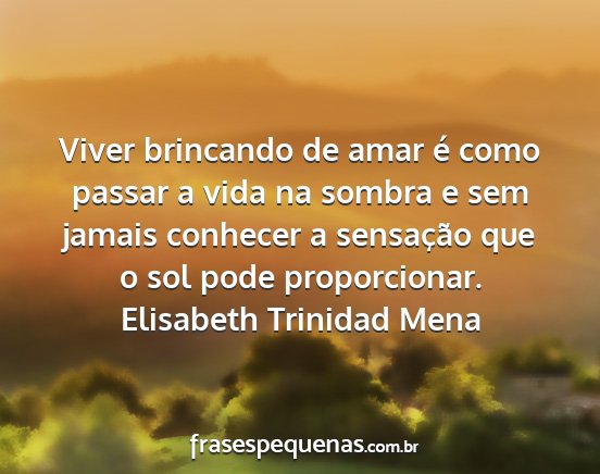 Viver brincando de amar é como passar a vida na sombra e sem jamais conhecer a sensação que o sol pode proporcionar.Elisabeth Trinidad Mena