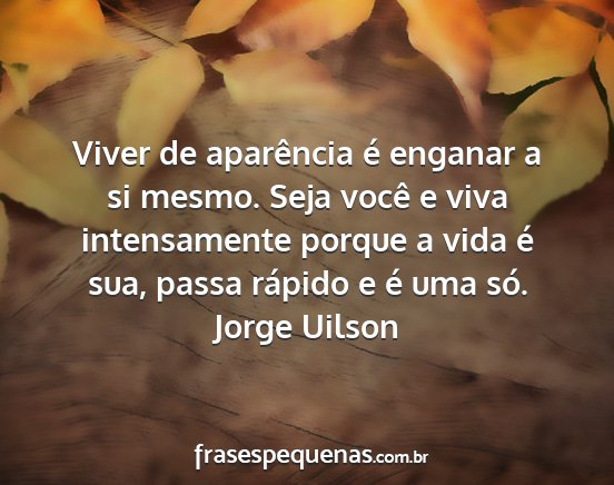 Viver de aparência é enganar a si mesmo. Seja você e viva intensamente porque a vida é sua, passa rápido e é uma só.Jorge Uilson