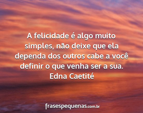 A felicidade é algo muito simples, não deixe que ela dependa dos outros cabe a você definir o que venha ser a sua.Edna Caetité