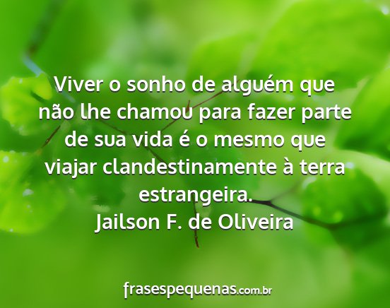 Viver o sonho de alguém que não lhe chamou para fazer parte de sua vida é o mesmo que viajar clandestinamente à terra estrangeira.Jailson F. de Oliveira