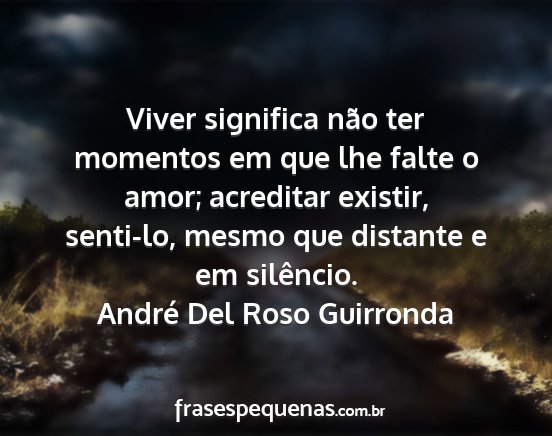 Viver significa não ter momentos em que lhe falte o amor; acreditar existir, senti-lo, mesmo que distante e em silêncio.André Del Roso Guirronda