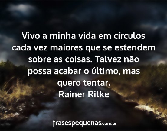 Vivo a minha vida em círculos cada vez maiores que se estendem sobre as coisas. Talvez não possa acabar o último, mas quero tentar.Rainer Rilke