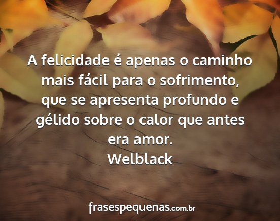 A felicidade é apenas o caminho mais fácil para o sofrimento, que se apresenta profundo e gélido sobre o calor que antes era amor.Welblack