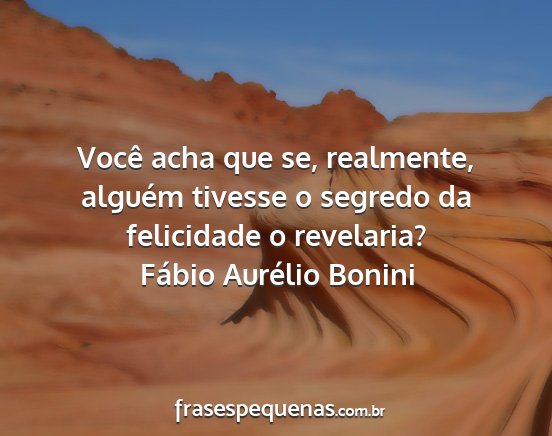 Você acha que se, realmente, alguém tivesse o segredo da felicidade o revelaria?