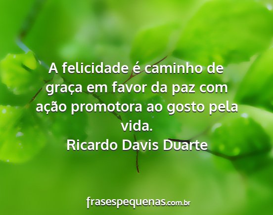 A felicidade é caminho de graça em favor da paz com ação promotora ao gosto pela vida.Ricardo Davis Duarte