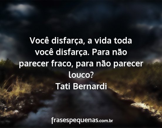 Você disfarça, a vida toda você disfarça. Para não parecer fraco, para não parecer louco?Tati Bernardi