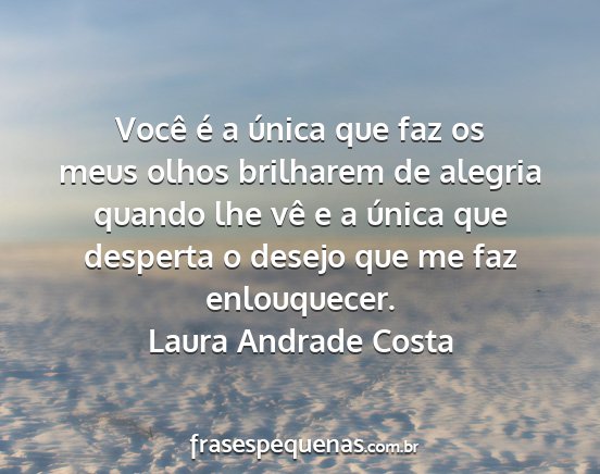 Você é a única que faz os meus olhos brilharem de alegria quando lhe vê e a única que desperta o desejo que me faz enlouquecer.Laura Andrade Costa