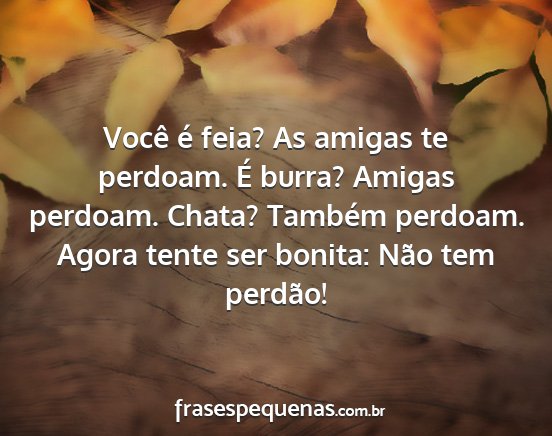 Você é feia? As amigas te perdoam. É burra? Amigas perdoam. Chata? Também perdoam. Agora tente ser bonita: Não tem perdão!