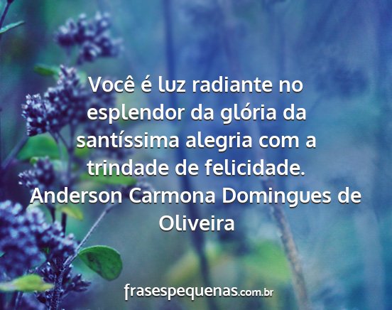 Você é luz radiante no esplendor da glória da santíssima alegria com a trindade de felicidade.Anderson Carmona Domingues de Oliveira