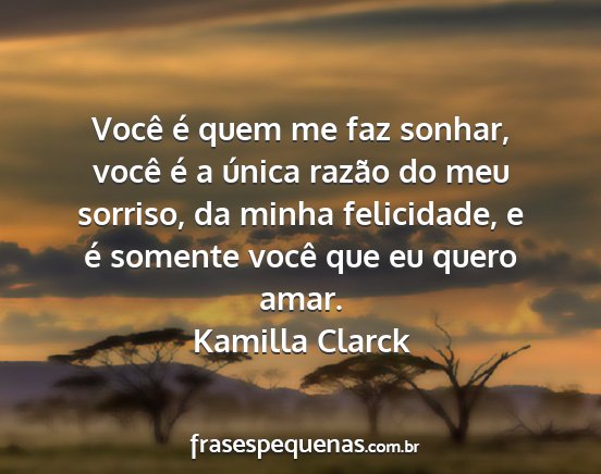 Você é quem me faz sonhar, você é a única razão do meu sorriso, da minha felicidade, e é somente você que eu quero amar.Kamilla Clarck