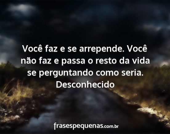 Você faz e se arrepende. Você não faz e passa o resto da vida se perguntando como seria.