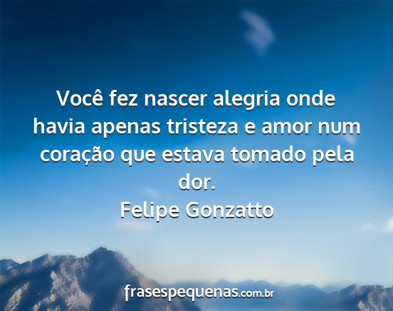 Você fez nascer alegria onde havia apenas tristeza e amor num coração que estava tomado pela dor.Felipe Gonzatto
